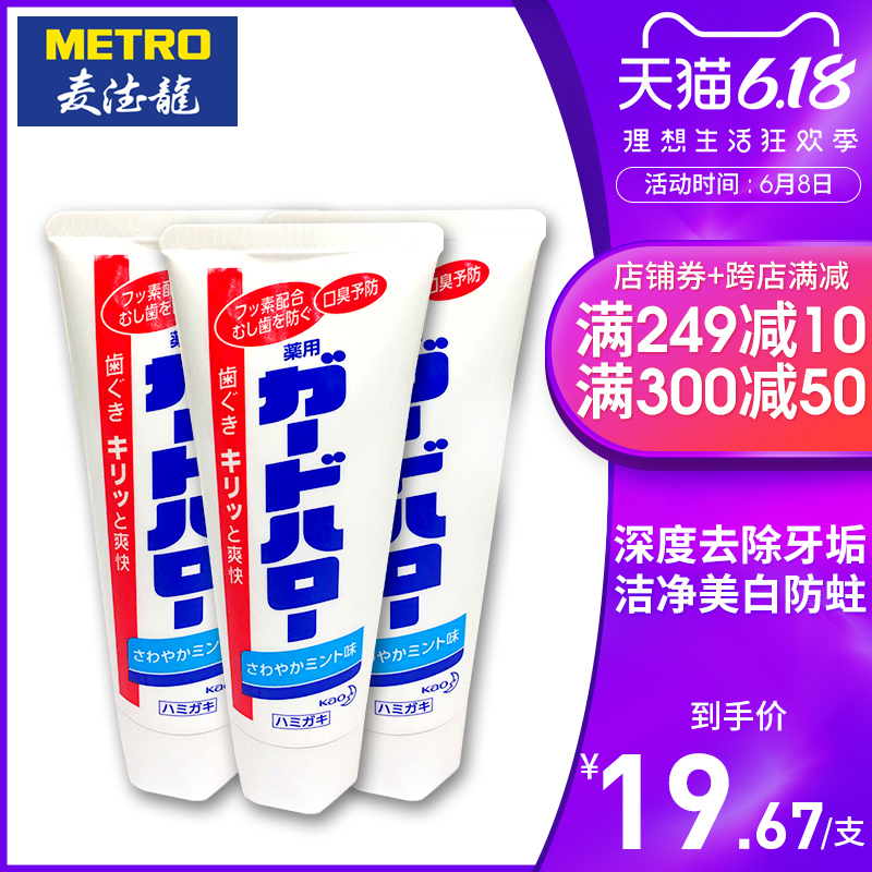 麦德龙官方海外旗舰店麦德龙日本进口花王去除牙垢防蛀洁净美白牙膏165g*3
