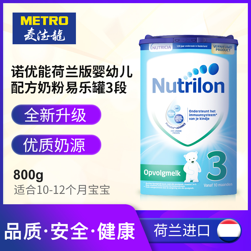 麦德龙官方海外旗舰店麦德龙诺优能荷兰版较大婴儿配方奶粉3段易乐罐10-12月800g效期至2021-05-16