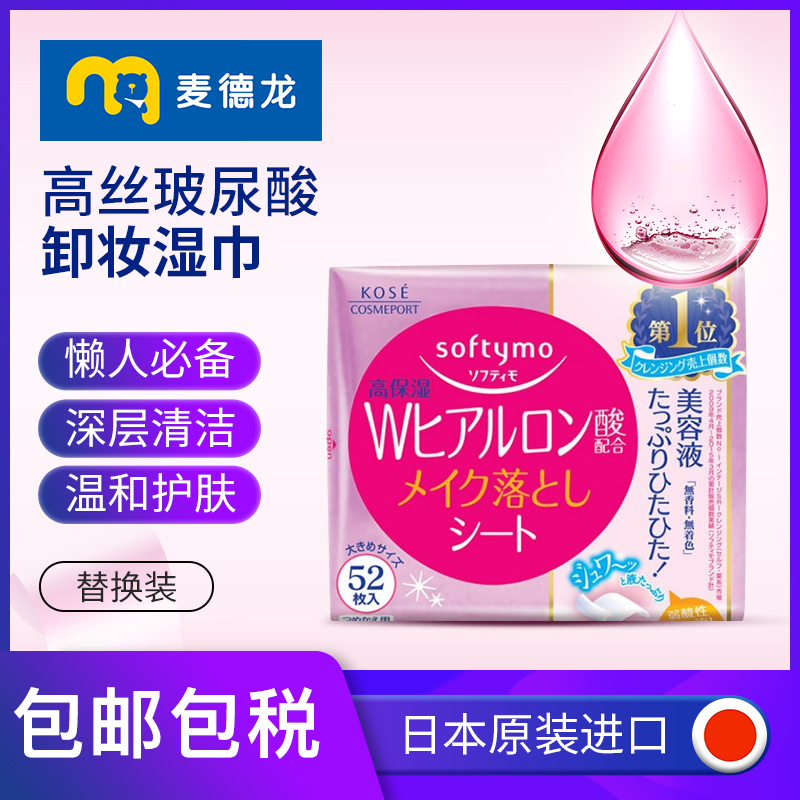 麦德龙官方海外旗舰店麦德龙日本KOSE高丝玻尿酸高效保湿卸妆湿巾棉52片补水抽取便携